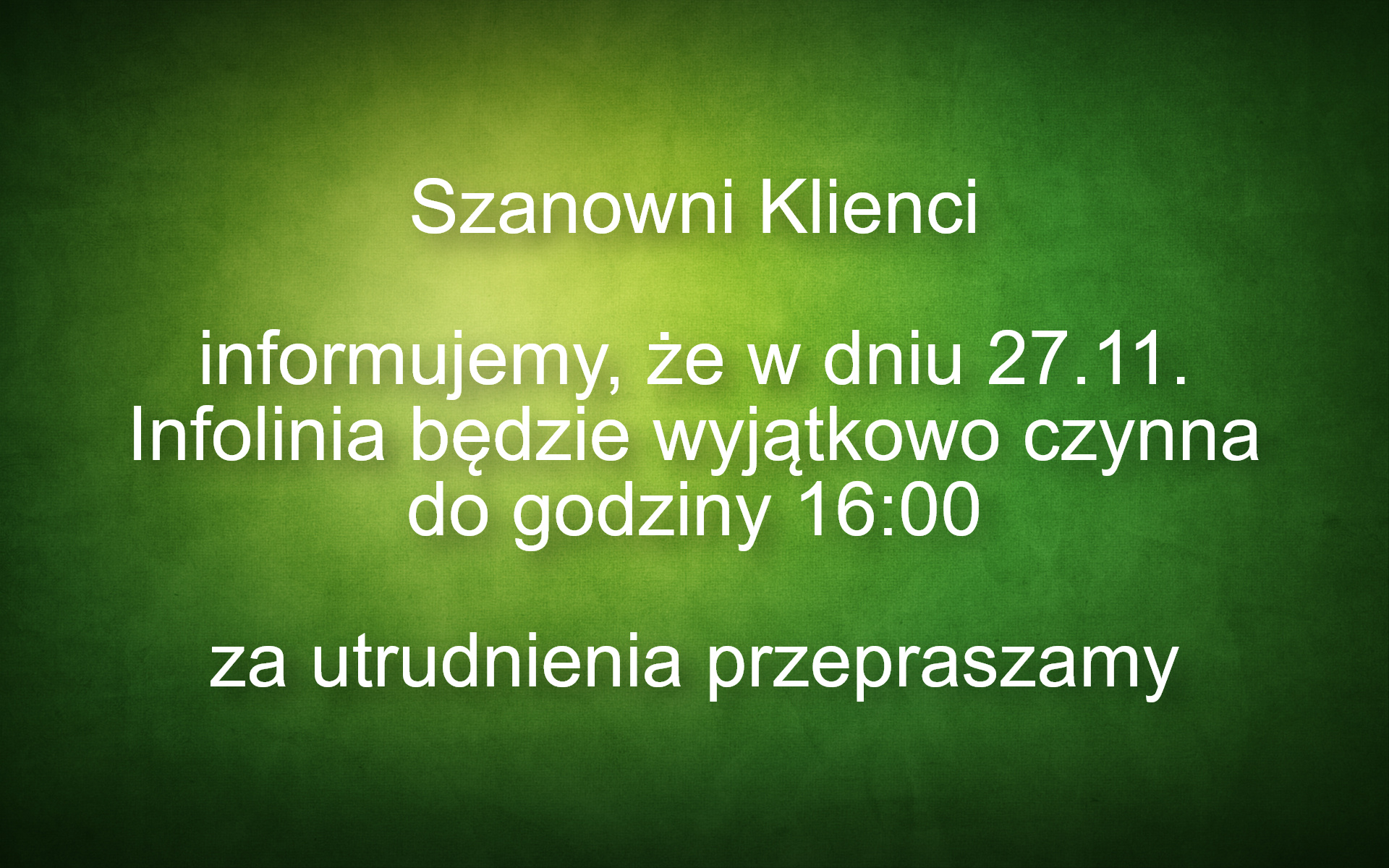 Biuro Obsługi Klienta czynne pon-pt 9:00-16:00